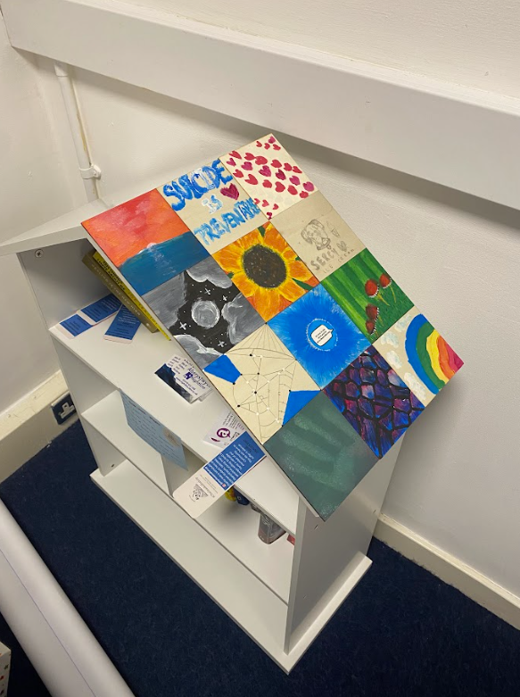 The Bookhouse Project is an extension of our Charlie Asked for Help campaign, it is a small bookshelf located in the Wellbeing room of the union decorated with tiles painted by students and friends of Charlie’s to make up a memorial. We met as a group on Charlie's birthday to walk and paint in his memory. Students used it as an opportunity to talk about him in a safe space, the session was a good way to use creativity to create a product that would be in the union for years to come. 319 students across the UK have lost their lives between 2017-2020 and this number is only increasing. Each of them had family, friends, classmates and a story, this was just one way we wanted to appropriately memorialise a member of our community. With input from his mum and girlfriend, each tile is an expression of the people who care about him and our cause. It houses books ranging from fiction for students to get lost in to self-help to guide you in times of need. It has custom bookmarks that memorialise another student we lost Steffan, he will not be forgotten. It is crucial we continue the discourse about mental health and even more so important we encourage men to speak up about their problems and seek support. Each life matters and each will be remembered in it’s own way. This is how we choose to remember Charlie.