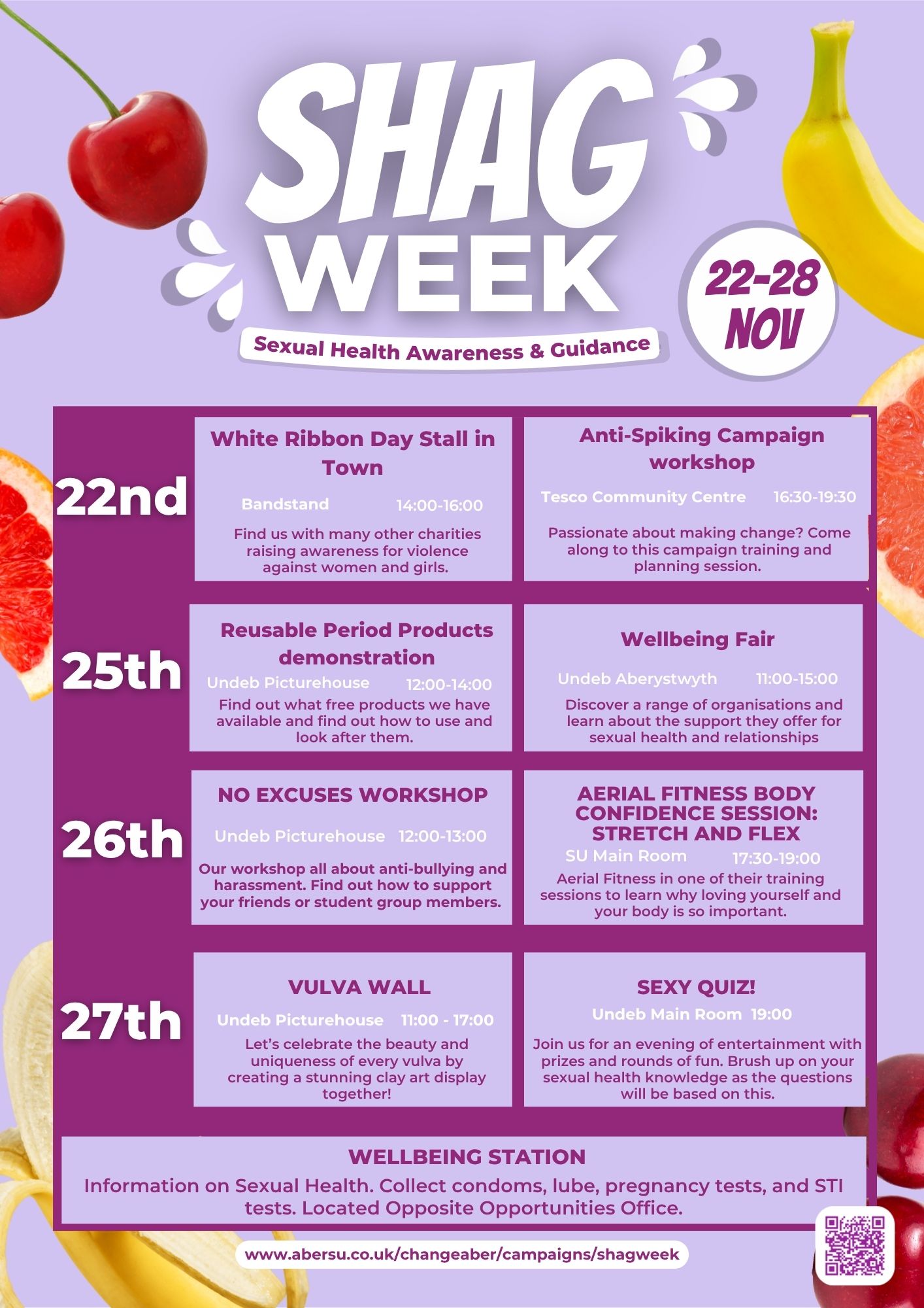 The SHAG Campaign will run throughout the year, with videos and posters being regularly shared about how certain things work and where to go to find help. We will be hosting a SHAG week with all our main events happening.